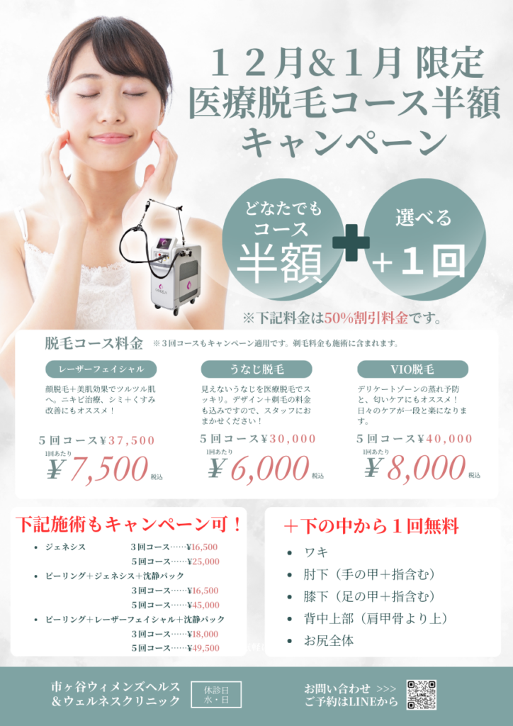 【市ヶ谷院|期間限定12月/1月キャンペーン】医療脱毛50%OFF+1部位お試し無料!